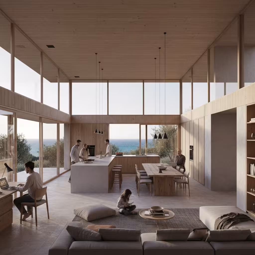 • A+ energy efficiency — CLT homes significantly outperform conventional masonry in thermal performance, reducing operational costs in the Greek climate